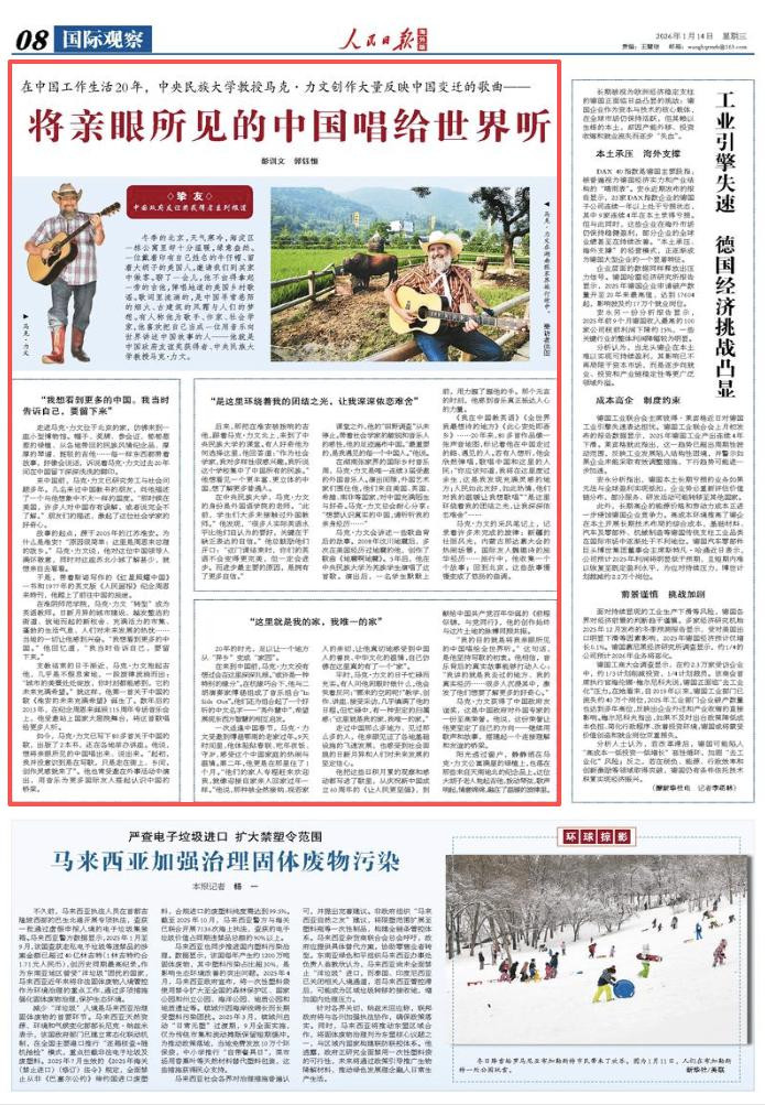 《我在中国教英语》《全世界我最想待的地方》《此心安处即吾乡》……20年来,80多首作品像一张声音地图,标记着他在中国走过的路、遇见的人。若有人想听,他会欣然弹唱,歌唱中国和这里的人民:“你应该知道,我将在这里度过余生,这是我发现充满灵感的地方;人民如此友好,如此热情,他们对我的温暖让我想歌唱”“是这里环绕着我的团结之光,让我深深依恋难舍”……